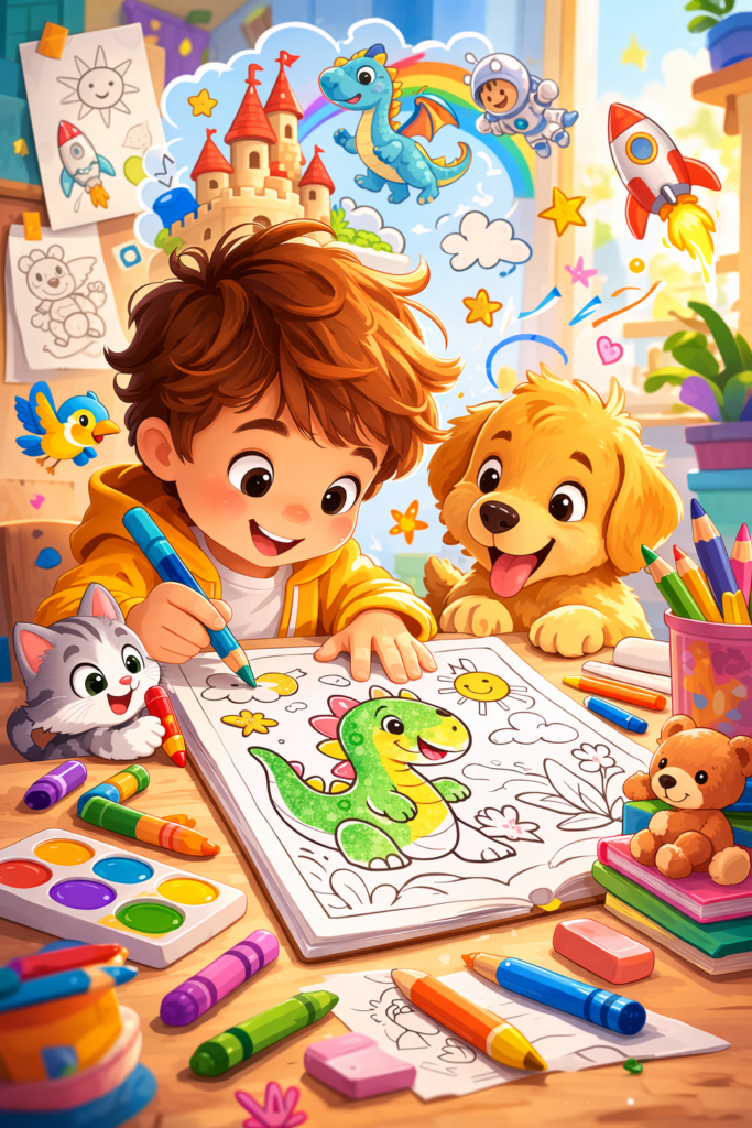 Bring creativity to life with custom coloring pages designed especially for kids. The Coloring Book Generator creates printable, kid-friendly illustrations that inspire imagination, support fine motor skills, and make screen-free play easy and fun.